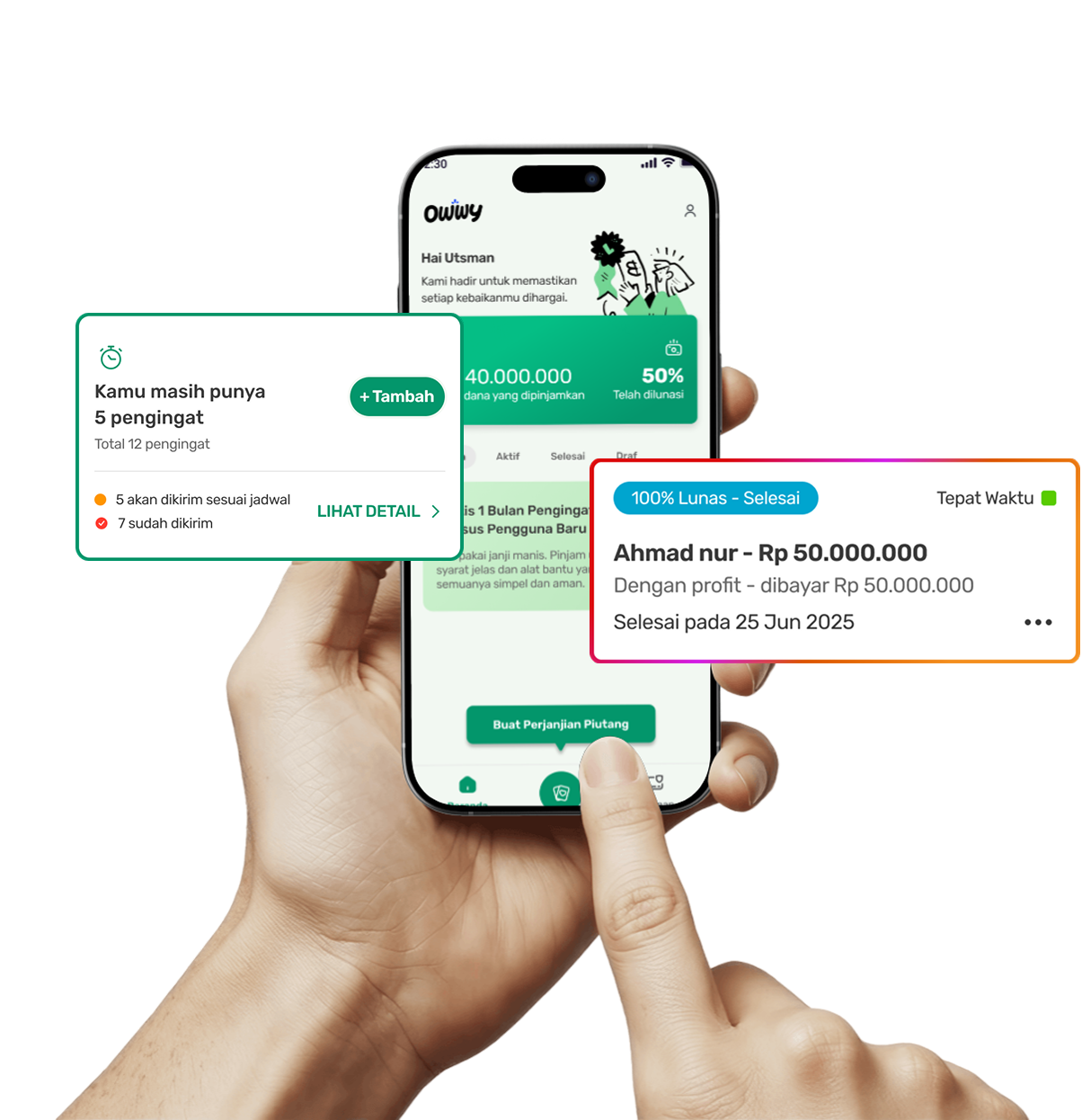 “Utang kecil-kecilan sering bikin sungkan. Sejak pakai OWWY, semuanya tercatat rapi, jadi gak perlu nagih manual tinggal tunggu pengingat otomatis jalan.”